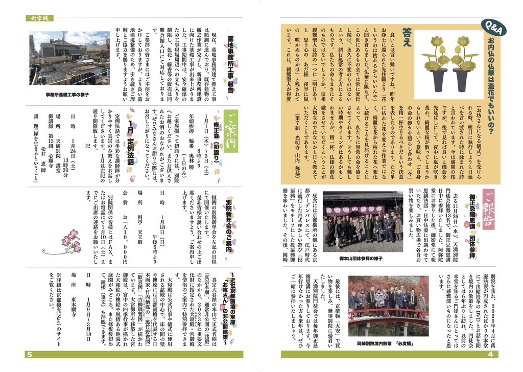 良いとは言い難いですね。昨年お浄土に還られた先住職より「花というのは枯れるからいいんや」と聞き育ちました。仏華に限らず、この世にあるもの全ては常に変化し続け、永久に不変のものはないという、諸行無常の考え方によるものです。私たちの命もまさにそのものではないでしょうか。宗祖親鸞聖人は詩の一つに「明日ありと 思う心の あだ桜 夜半に嵐の 吹かぬものかは」と残されています。これは、親鸞聖人が得度(お坊さんになる儀式)を受けられる時、明日に執行しようと日延べを言い渡された時に詠まれた詩と言われています。今は満開の桜ですが、後で見れば良いと機会を先延ばしにして、夜中に嵐が吹き荒れ、綺麗な桜が散ってしまうかもしれないという意味と、ご自身の命の儚さを照らし合わせ「今」を精一杯生きるべきだという決意を表したものであります。ただ単に枯れた花を変える作業ではなく、綺麗な花から枯れた花へ変化し続けることを見届けることによって、私たちに無常の命を感じさせてくれます。どうしても難しい時期やタイミングはあるかもしれませんが、精一杯、仏様の御荘厳させていただくということが大切なのではないかと日々教えていただくことであります。